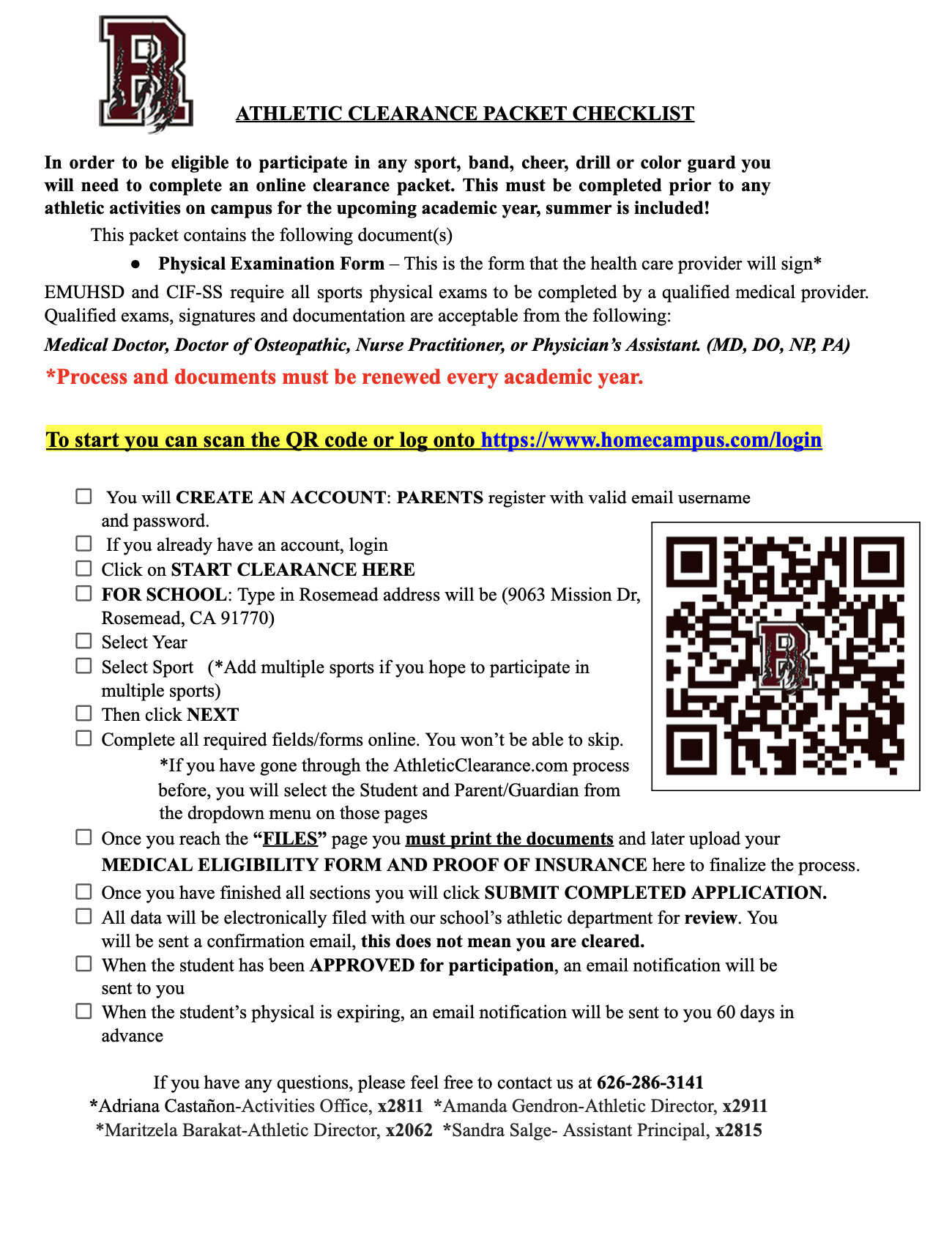 Complete the RHS Athletic Clearance Packet Below: