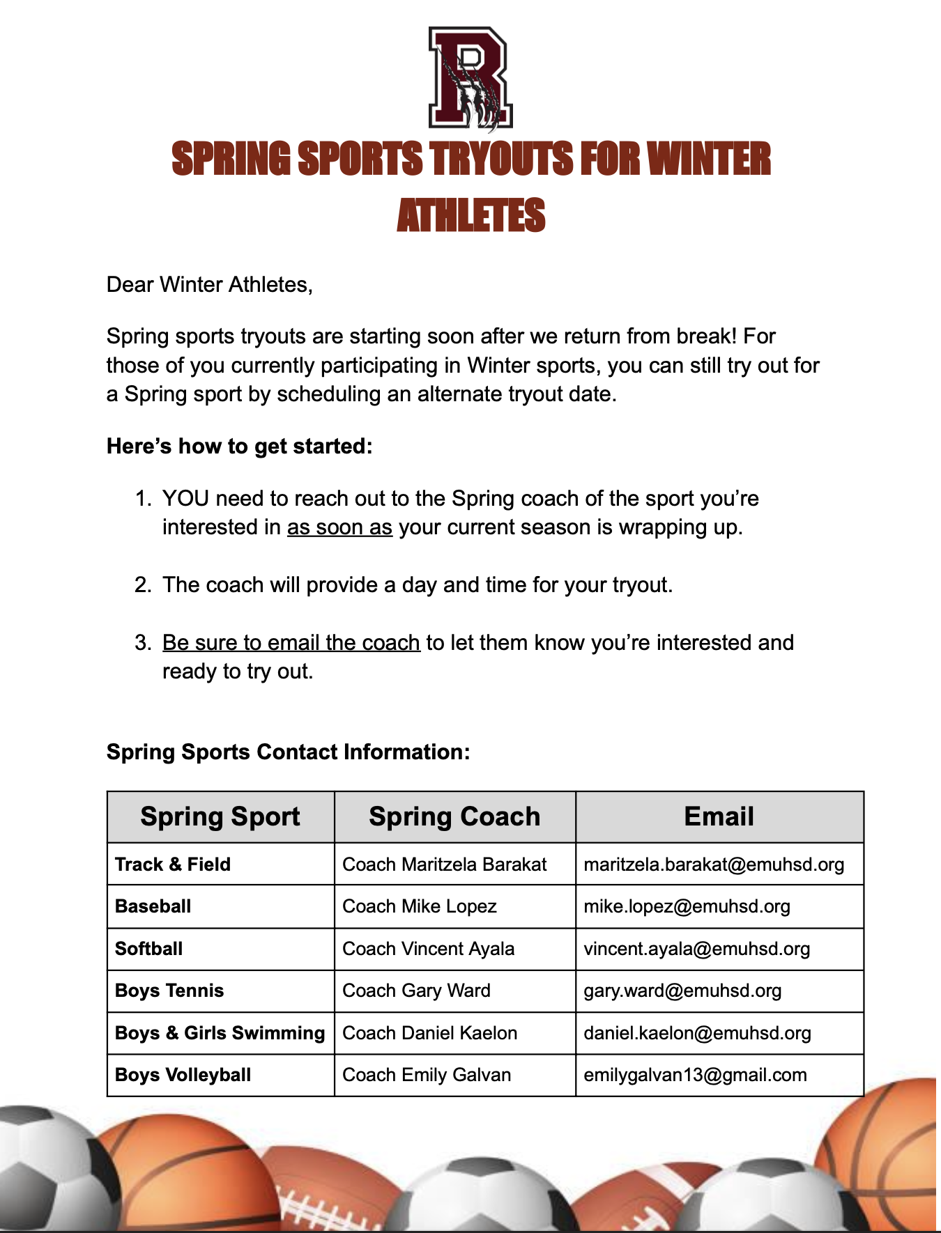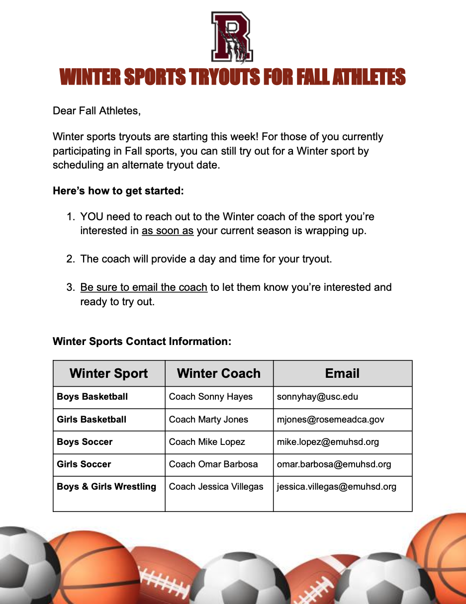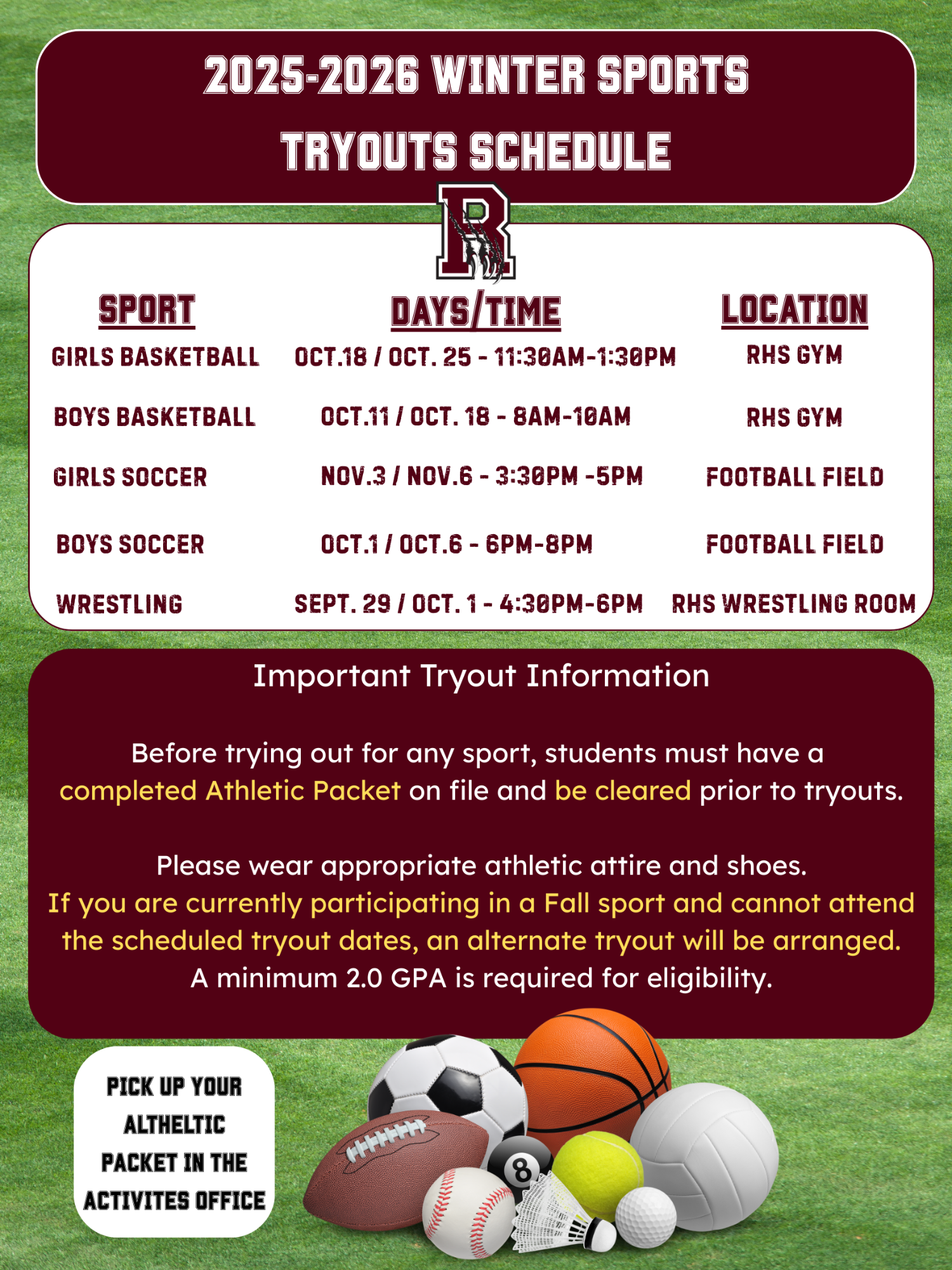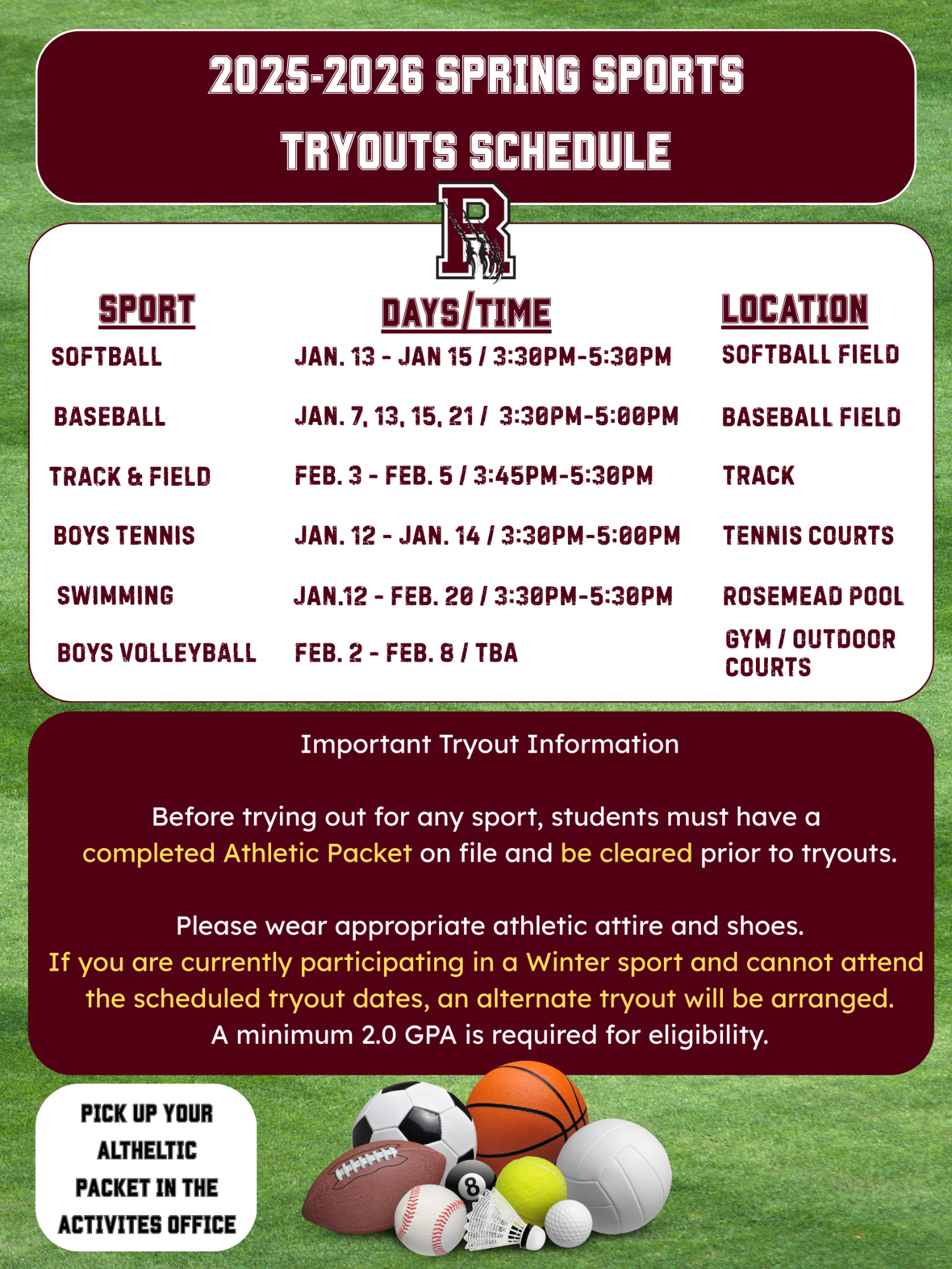 Stay tuned for the 26-27 Fall Sports Tryout Schedule!